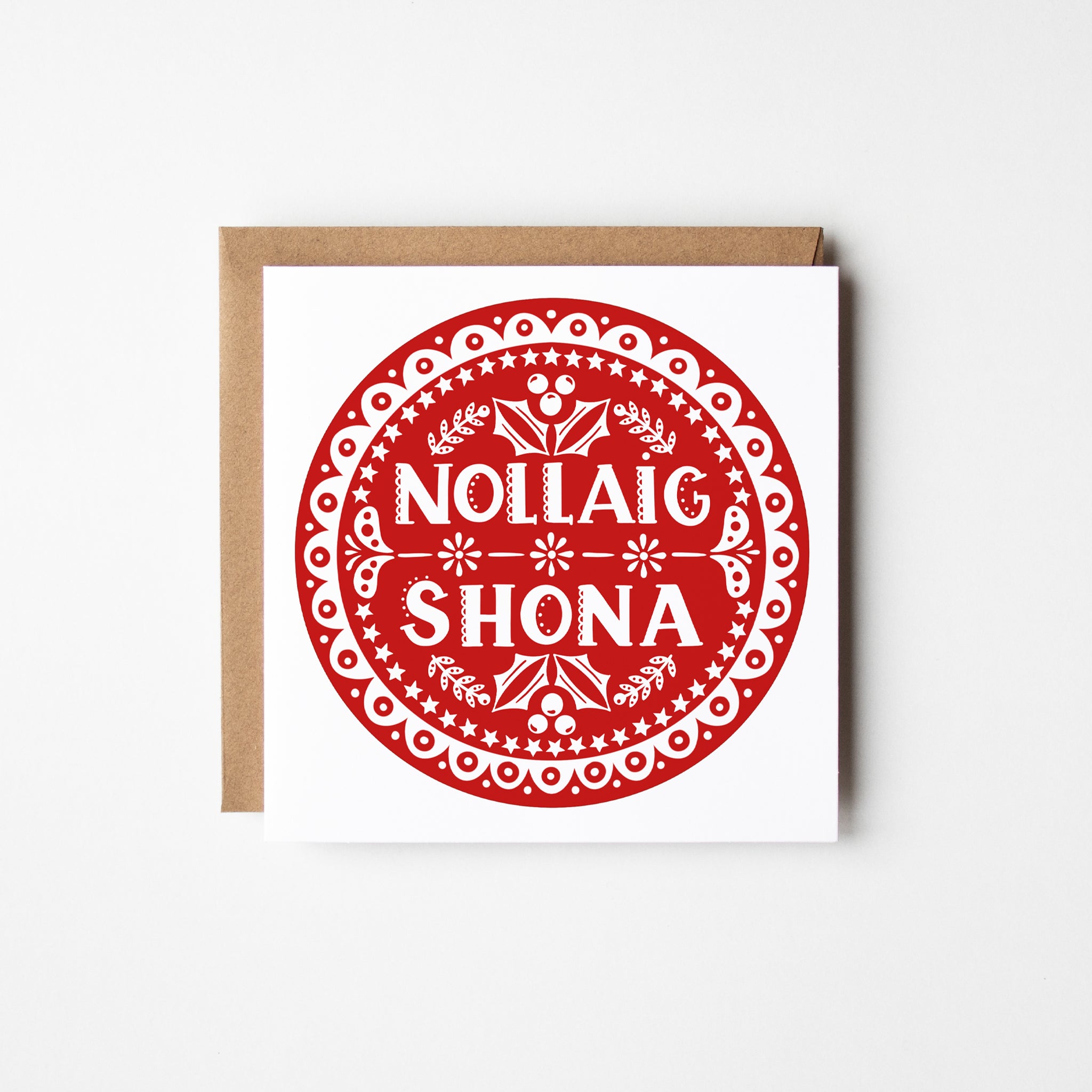Nollaig Shona - Irish Christmas card - Merry Christmas - Hand printed